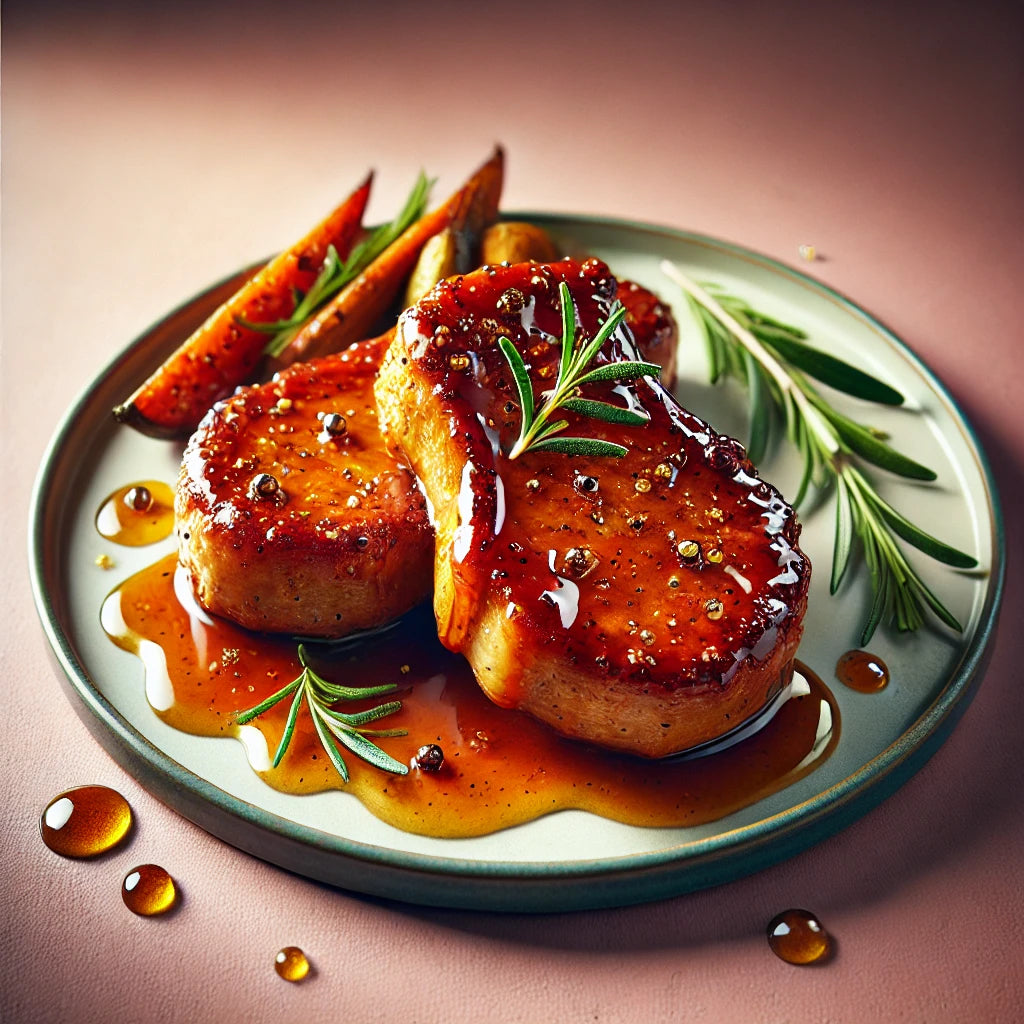 Pork chops brushed with a honey-cinnamon glaze and baked to perfection.