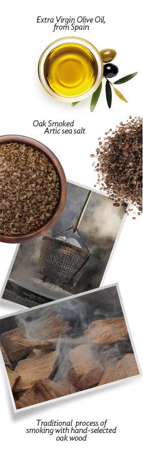 Delicious cracker made with naturally oak-smoked sea salt and extra virgin olive oil.